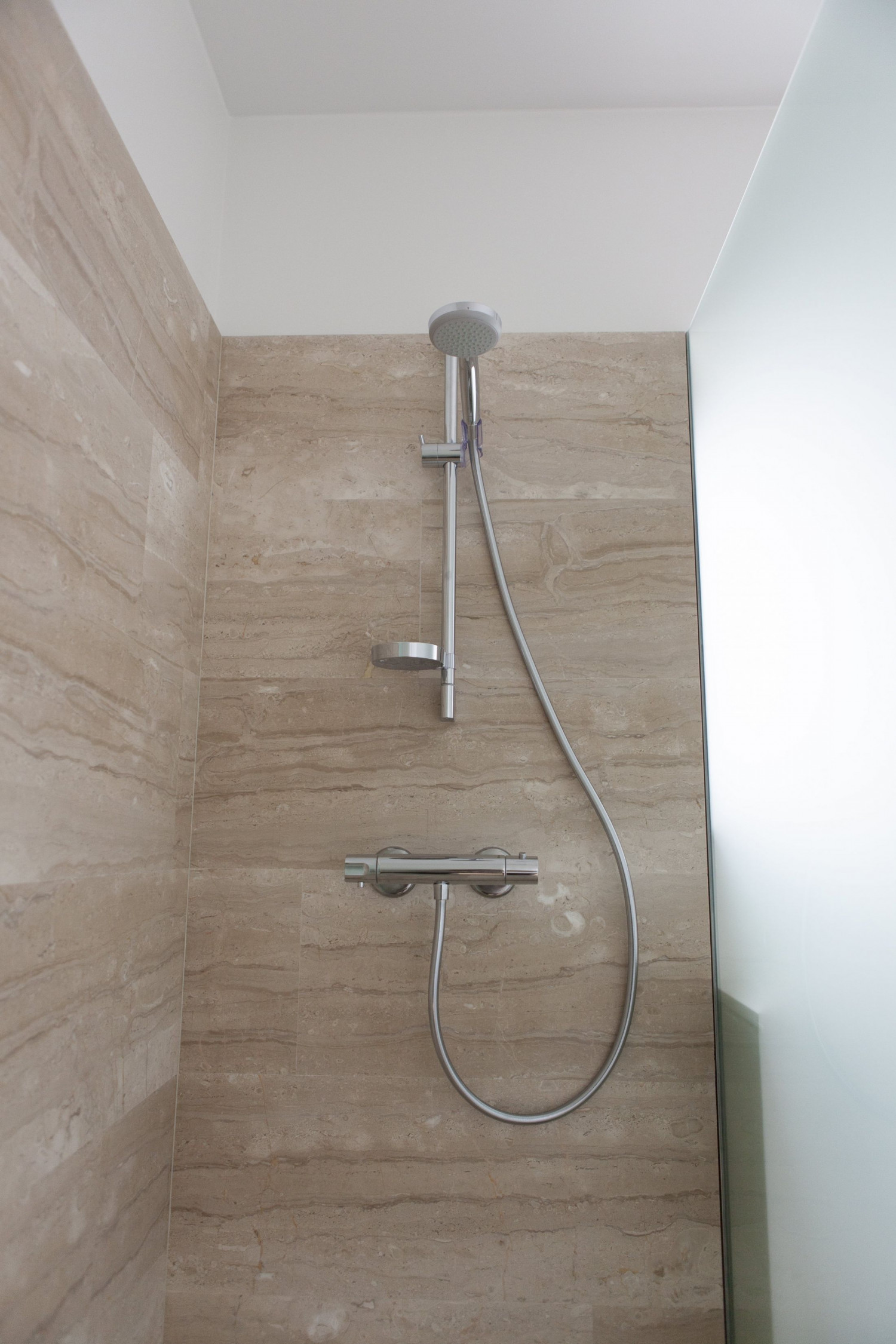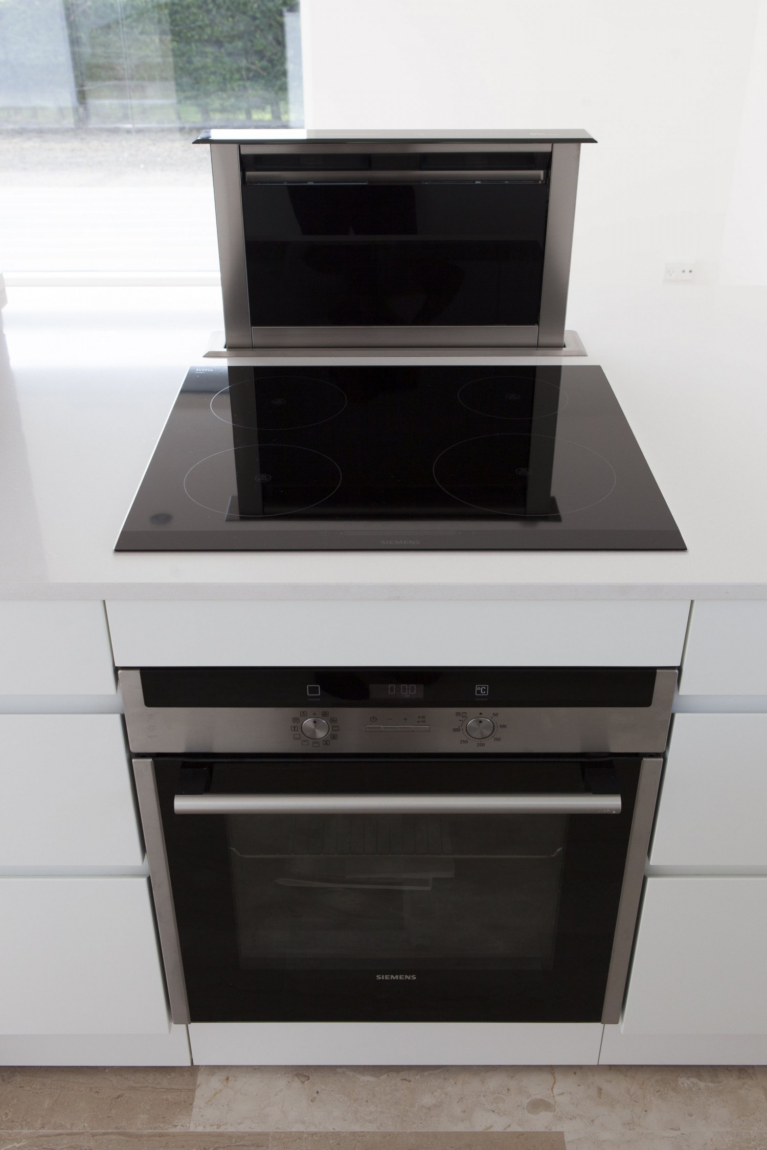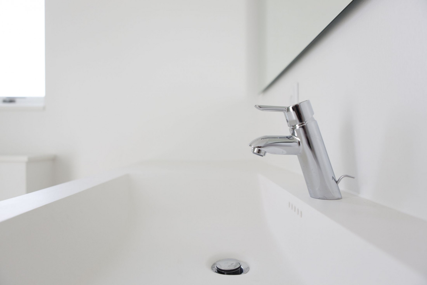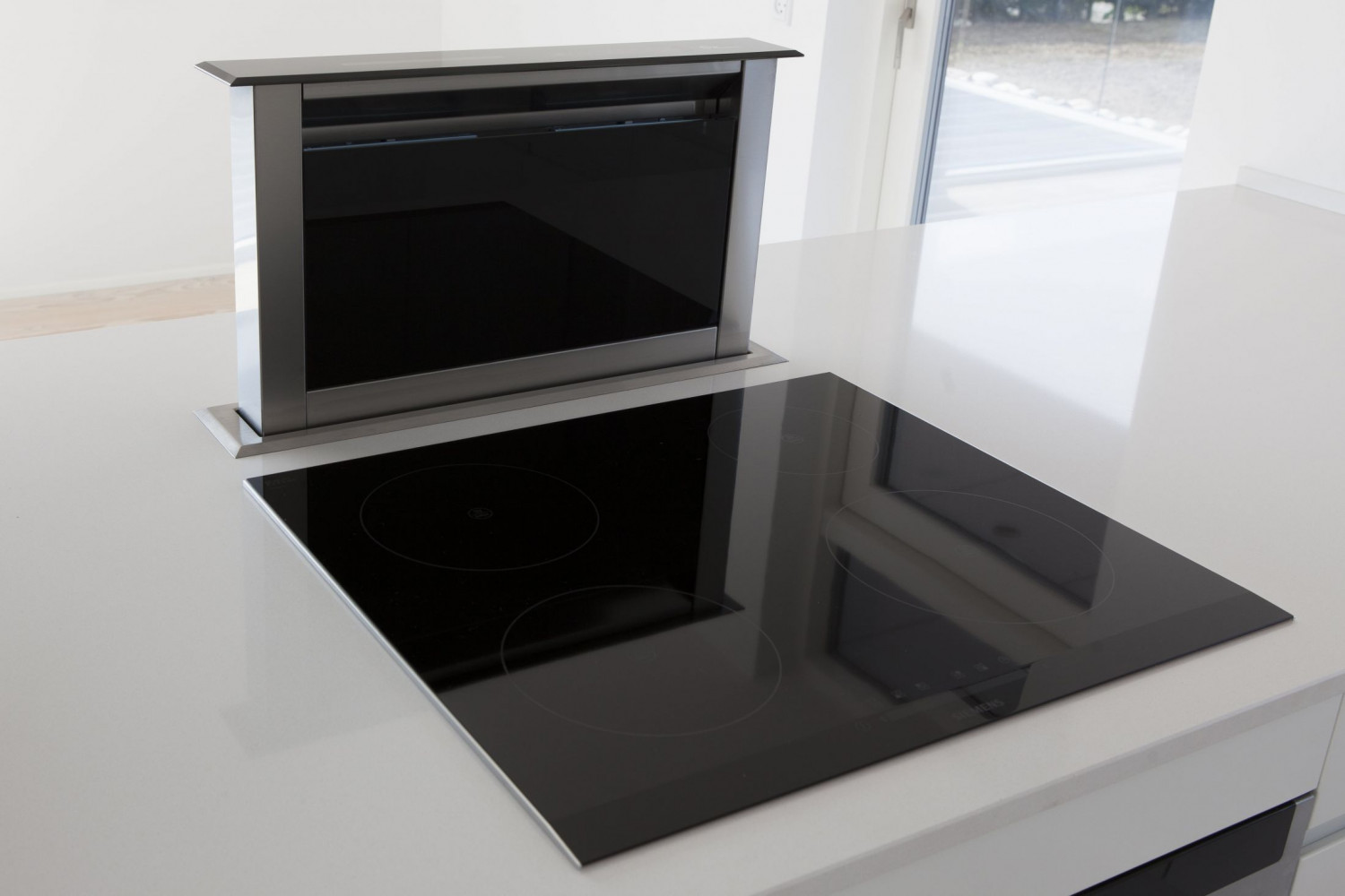 Sommerhuset er bygget med fladt tag, og der er valgt sorte og hvide materialer, som giver fritidshuset et moderne look.